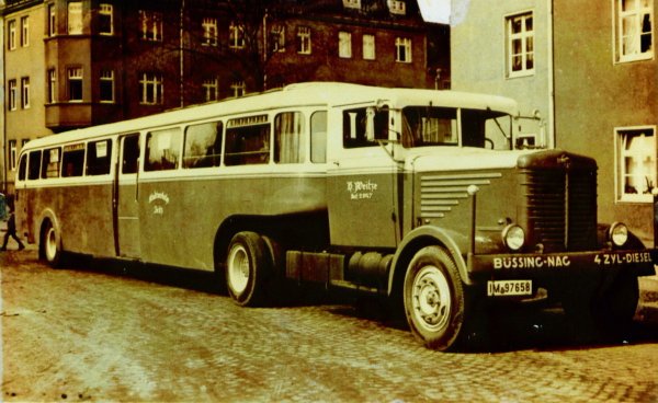 Der Bus wurde in der "Fritz Fleischer Karosseriefabrik", in Gera, zwischen 1960-63 auf H6B-Fahrgestellen gebaut.